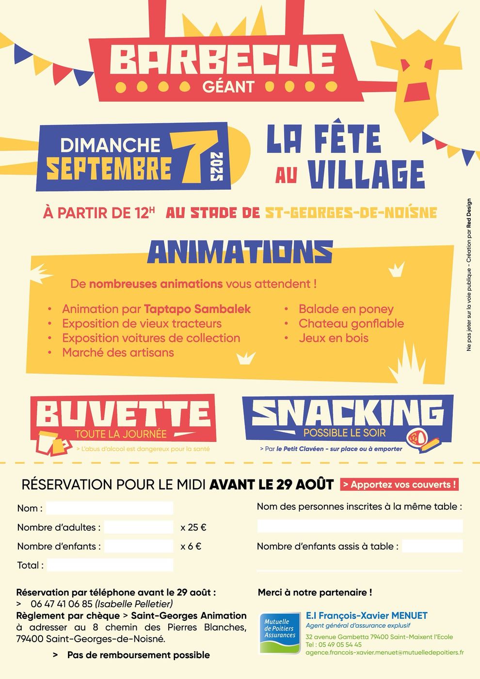 L'association Saint-Georges animation organise sa fête au village le dimanche 7 septembre 2025 à partir de 12h sur le stade de Saint-Georges de Noisné.